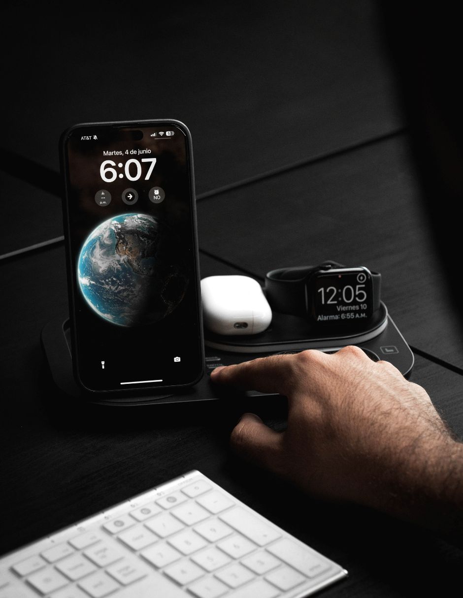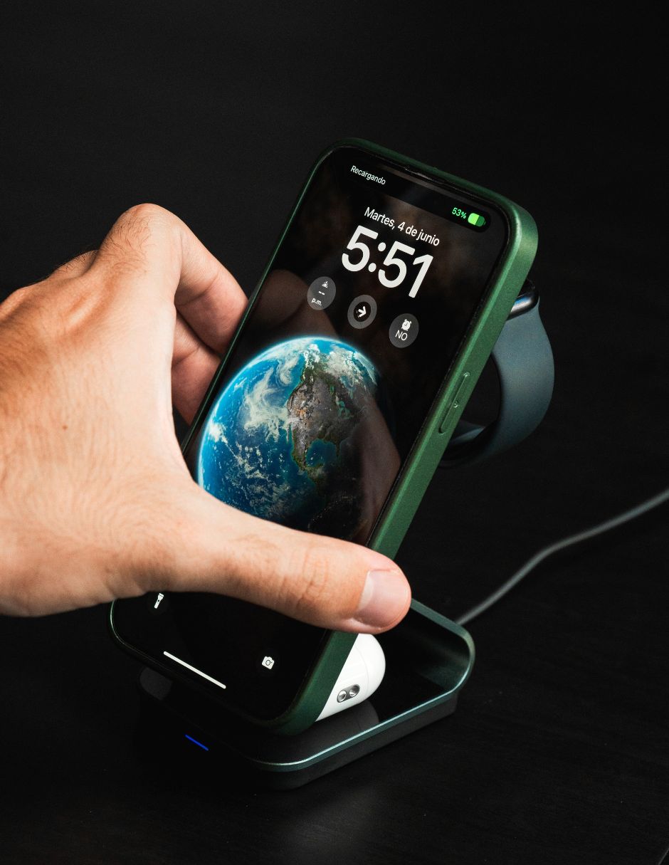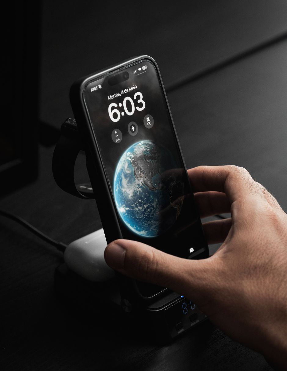 Sumérgete en la era de la carga magnética. Construido con aluminio completo para una durabilidad excepcional, este triple cargador ofrece una solución elegante y eficiente para cargar tus dispositivos.